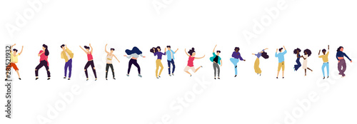 Crowd of young people dancing at club. Big set of characters having fun at party. Flat colorful vector illustration.