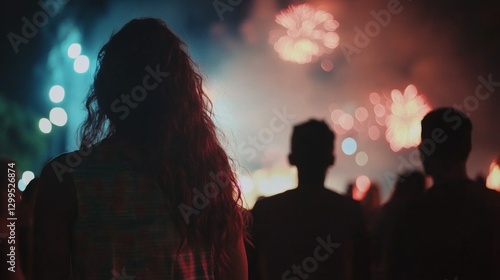 fireworks, night, crowd, people, display, show, spectacle, celebration, event, festival, summer, light, colours, vibrant, bright, dark, silhouette, woman, man, back, view, watching, amazed, awe, wonder, beautiful, stunning, impressive, exciting, magical, memorable, spectacular, fun, entertainment, joy, happiness, excitement, energy, atmosphere, ambience, public, gathering, party, holiday, vacation, freedom, life events