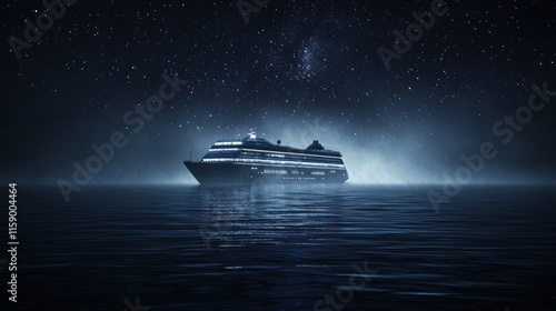 ship, cruise, ocean, sea, night, star, sky, water, travel, vacation, holiday, journey, voyage, dark, calm, peaceful, serene, majestic, elegant, luxury, adventure, exploration, mystery, romantic, solitude, beauty, scenic, landscape, nautical, vessel, transport, transportation, sailing, boating, maritime, twilight, evening, darkness, gleam, silhouette, deep, huge