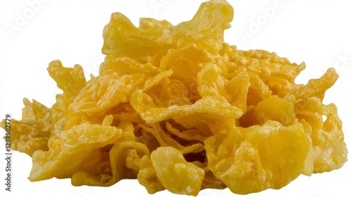 Crunchy Golden Cornflakes Pile Isolated on White Background Breakfast Cereal Snack Food Image
