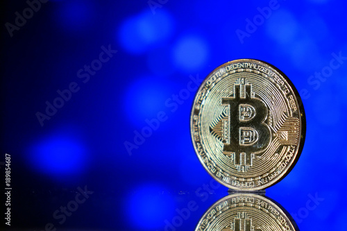 Cryptocurrency bitcoin gold. Bitcoin on a blue background .