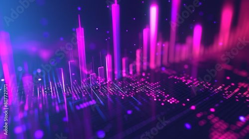 Cryptocurrency market trends: comprehensive bar graph analysis of stock exchange indices on a vibrant purple background