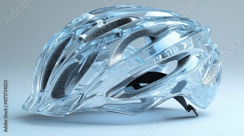 Crystal bicycle helmet, 3D model with clear and smooth surface, simple opaque background, stylish and protective, Photorealistic