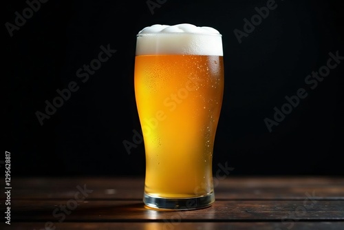 Crystal glass of light beer, condensation Black backdrop , glass, condensation