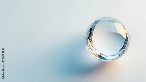 Crystal Sphere on a White Background Top View with Copy Space