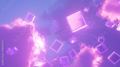 cube, cloud, purple, pink, fantasy, dream, digital, art, abstract, surreal, glow, light, sky, floating, iridescent, neon, vibrant, aethereal, mystical, magical, hazy, pastel, soft, dreamy, evocative, atmospheric, visual, artwork, illustration, design, graphic, modern, artistic, creative, aesthetic, futuristic, scene, background, texture