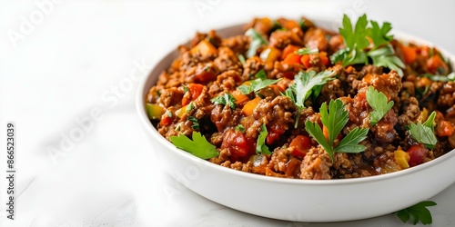 Cuban Picadillo A Traditional Dish Against a Minimalist Background. Concept Cuban Picadillo, Traditional Dish, Minimalist Background