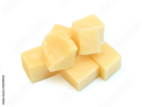 Cubes of cheddar cheese isolated on white