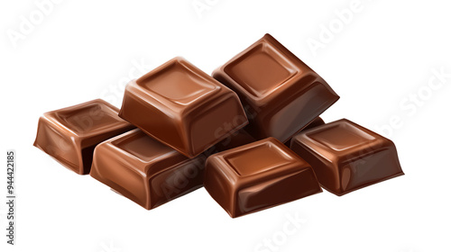 Cubes of milk chocolate bar, on transparency background PNG,