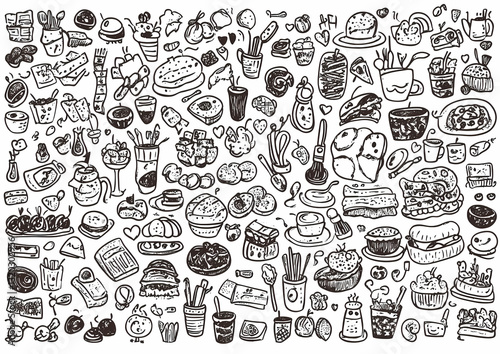 food, doodle, vignetting, hand-drawn, culinary, art, drawing, beverage, meal, cookery, drink, dessert, snack, illustration, collection, artistic, black-and-white, variety, delicious, menu, eatery, cafes, bakery, epicure, deliciously, eat, tasty, creative, design, breakfast, lunch, dinner, sweet, savoury, graphic, pattern, background, element, icon, simple, isolated, collage, hot drink, tea, burger, sandwich, cake, pastry