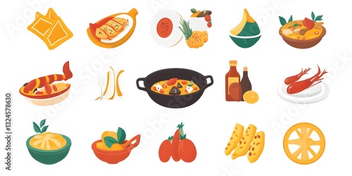 food, cookery, dish, ingredient, savoury, zesty, culinary, cooking, epicure, delicious, meal, eating, favor, tasty, lunch, dinner, breakfast, snack, spice, herb, vegetable, meat, seafood, poultry, dairy, bread, pasta, rice, fruit, plate, tray, assortment, variety, design, illustration, artistic, arrangement, colourful, presentation, freshness, raw, cooked, prepared, healthy, balanced, nourishment, diet, organic