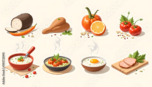 culinary, vector, image, ingredient, for, popular, dish, illustration, process