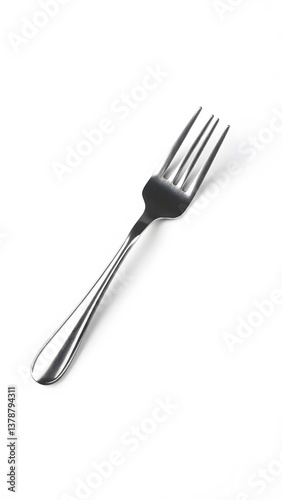 Culinary Tool: A close-up shot of a silver fork on an angle, illustrating a minimalist aesthetic, capturing details of its design and the reflection of the light.