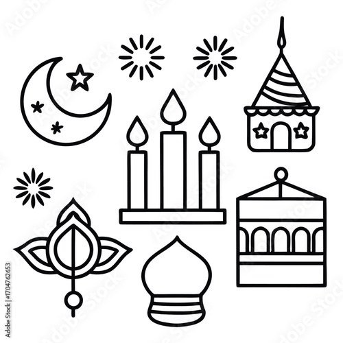eid, christmas, celebration, festival, holiday, icon, symbol, cultural, religious, event, design, graphic, decoration, illumination, light, lantern, candle, crescent, moon, star, fireworks, dome, building, traditional, gathering, joy, community, worship, diverse