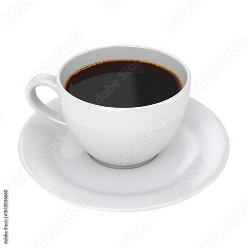 Cup of black coffee on saucer for morning caffeine boost and energy fix isolated on transparent background