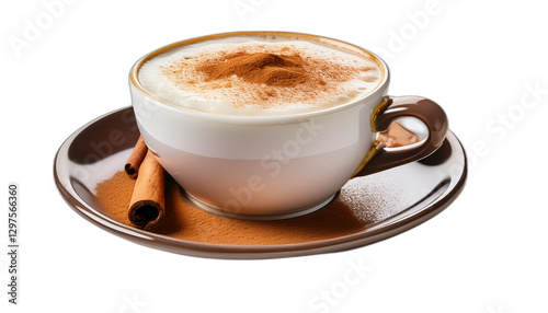 Cup of cappuccino coffee with cinnamon isolated on transparent background