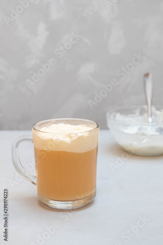 tea, cream, cheese, foam, herbal, salt, sugar, cream cheese, drink, cold, beverage, summer, delicious, iced, sweet, milk, glasses, trendy, deliciously, healthy, food, refreshment, background, grey background, grey, asian, cool, health, tasty, chinese, creamy, cup, cup of tea, trend, topping, table, black tea, vertical