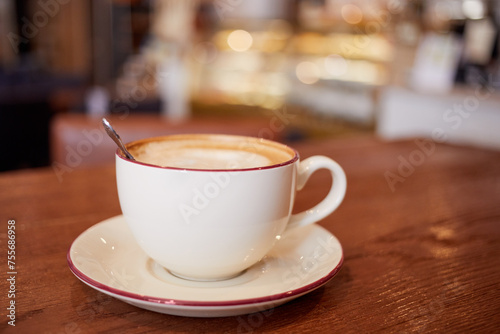 cafes, hot drink, cup, table, wood, wooden, aroma, bar, beverage, black, breakfast, brown, caffeine, cappuccino, closeup, counter, cream, dark, delicious, design, dof, drink, espresso, foam, food, fresh, froth, hot, lighting, liquid, menu, mocha, mug, natural, nobody, roasted, saucer, shallow, space, spoon, style, surface, taste, teaspoon, texture, traditional