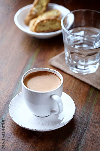 hot drink, coffee break, breakfast, biscuit, aroma, aromatic, background, beverage, black, break, brown, cafes, caffeine, closeup, copy space, cup, dark, dessert, drink, espresso, foam, food, food and drink, hot, hot drink, italian, mineral water, morning, rustic, sweet, table, tasty, texture, traditional, vintage, white, wood, wooden