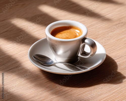 cup, espresso, shot, surrounded, soft, shadow, warm, wood, grain, steam, visible, gentle, sunbeam, through, window, earthy, tone, food, mood, photo, hot drink, drink, beverage, white, cafes, breakfast, hot, black, caffeine, brown, mug, saucer, morning, table, aroma, spoon, wooden, tea, plate, fresh, liquid, isolated