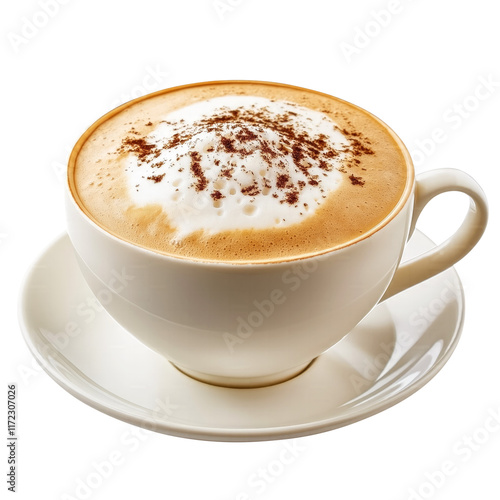 cup of hot cappuccino with milk foam isolated on transparent white background, clipping path