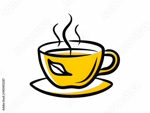 cup, tea, steam, leaf, drink, hot, beverage, aroma, yellow, outline, vector, illustration, cartoon, graphic, design, icon, drawing, symbol, signs, isolated, white, background, relaxing, herbal, natural, warm, fresh, simple, minimalist, line, art, shape, circle, food, organic, health, healthy, cupped, mug, saucer, handle, serving, cafes, menu, cookery, element, decorative, stylised, offering