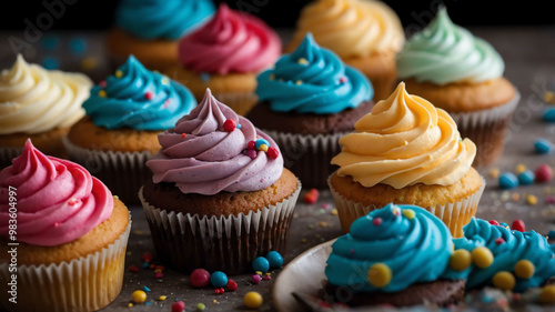 Cupcakes with colorful frosting background