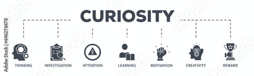 Curiosity banner web icon glyph silhouette with icon of thinking, investigation, attention, learning, motivation, creativity, reward