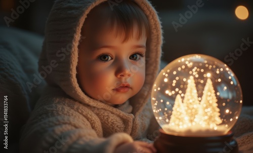 baby, toddler, snow globe, holiday, christmas, wonder, cosy, children, innocence, festive, cuteness, adorable, interior, happy, magic, sparkle, winter, aethereal, childhood, dreamy, emotion, playful, joy, smile, glow, scenic, family, mood, imagination, carefree, beautiful, closeup, atmosphere, peaceful, captivating, tender, nostalgic, delightful, wonders, playtime, exploration