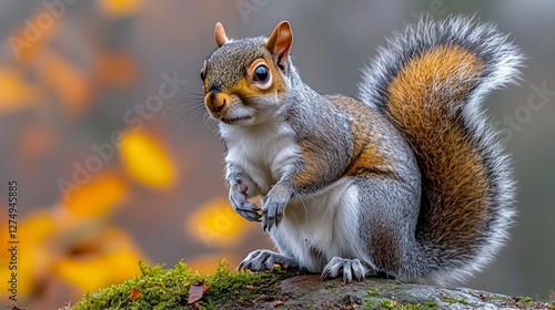 Curious Grey Squirrel Autumnal Scene Wildlife Photography