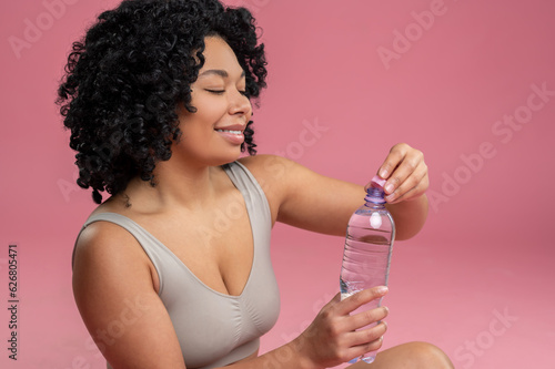 woman, female, feminine, asian, brunette, curly hair, cute, adult, indoor, lifestyle, diversity, personality, background, healthy, water, diet, bottle, pure, clean, health, losing weight, lingerie