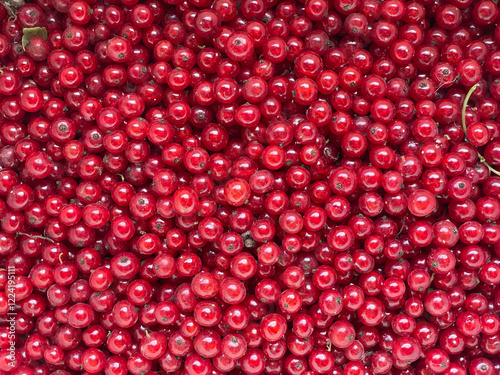 Currant red berries. Bright background of juicy picked berries. Summer composition for culinary recipes, healthy lifestyle and organic food services