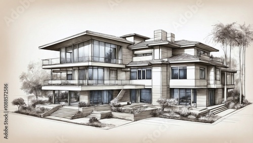 luxury house, architecture, drawing, vignetting, plan, blueprint, floor plan