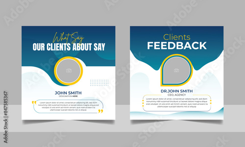 Customer feedback review design or client testimonial simple minimalist social media post. Business service rating poster square banner web template set. Photo placeholder frame vector.