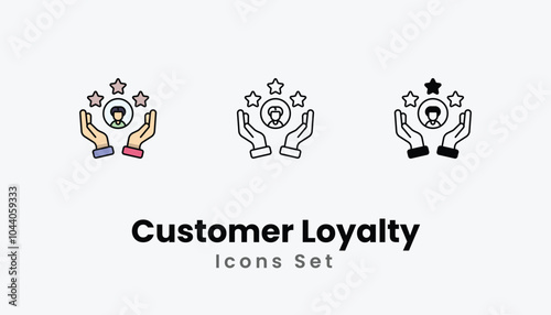Customer Loyalty Icons thin line and glyph vector icon stock illustration