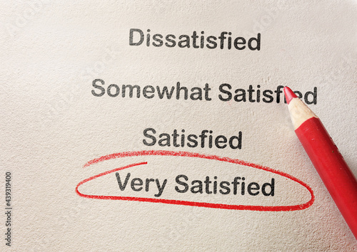 Customer satisfaction survey with Very Satisfied text circled in red pencil
