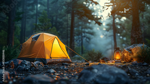 Customizable Tent and Lantern Icon with Personalized Message Area for Camping Designs
