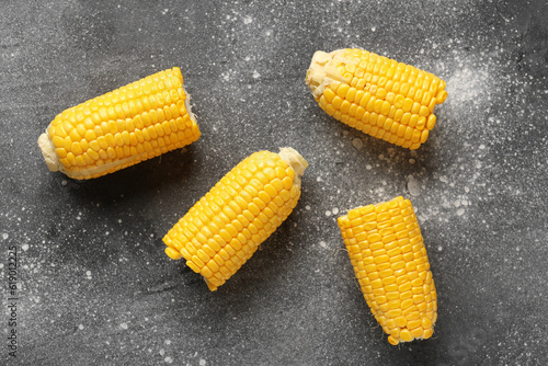 Cut fresh corn cobs on grey background
