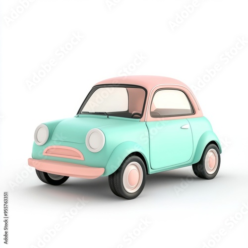 Cute 3D Car with Round Wheels in Pastel Colors - Minimalist Design