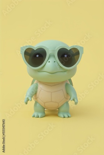 Cute 3D Turtle with Heart-Shaped Sunglasses on Bright Yellow Background