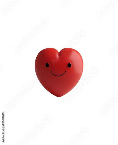 Cute and Happy Red Heart with Eye and Mouth: A 3D Rendered Chibi Cartoon Illustration, Isolated on Transparent Background, PNG