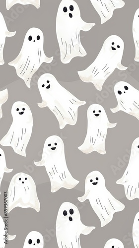 ghost, wallpaper, sweet, pattern, cute, minimalistic, hand-drawn, white, grey, simple, playful, halloween, design, art, cartoon, fun, doodle, light, whimsical, charming, friendly, background, childlike, adorable, happy, decorative