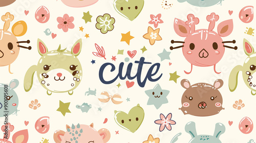 cute, pattern, star, heart, animal, cartoon, adorable, illustration, children, playful, seamless, design, background, rabbit, bear, cat, pig, decorative, baby, fun, childcare center, character, whimsical, happy, joyful, colourful, doodle, seamless pattern, wallpaper, fabric, delightful, texture, animal, flower, art, pet, vector