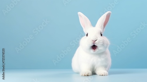 cute animal pet rabbit or bunny white color smiling and laughing isolated with copy space for easter background, rabbit, animal, pet, cute, fur, ear, mammal, background, celebration, generate by AI