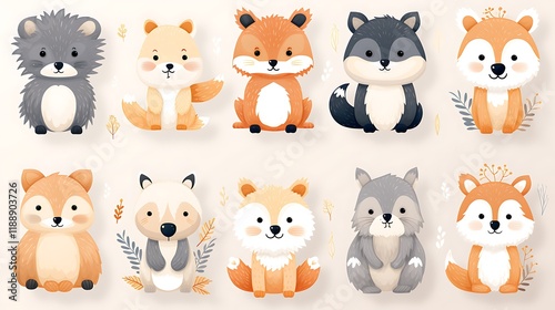 Cute animal sticker set, including a fox, bear, and rabbit.