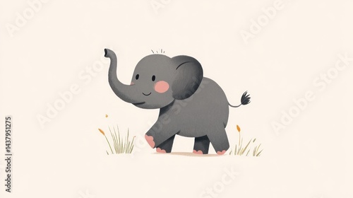 elephant, baby, animal, cute, cartoon, illustration, children, drawing, graphic, art, adorable, walking, nature, grass, wildlife, children, poster, print, digital, character, design, poster print, toddler, playroom, simple, minimalist, pastel, grey, pink, happy, peaceful, forest, jungle, safari, grassy, nature scene, gift, artwork, colouring
