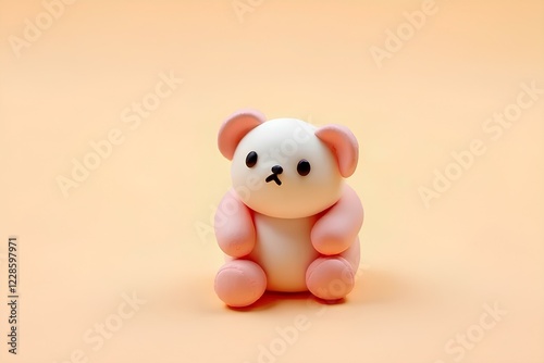 Cute bear figurine studio setting photography soft pastel colors close-up whimsical charm