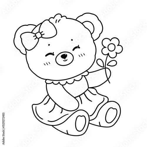 bear, cute, flower, holding, love, valentine, teddy bear, romantic, baby shower, colouring, hand-drawn, animal, clip art, greeting card, decoration, illustration, adorable, cartoon, sweet, celebration, heartfelt, character, whimsical, smiling, childhood, children