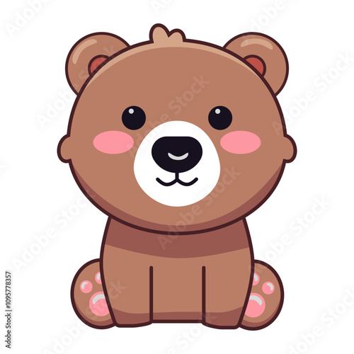 cute, animal, illustration, flat, bear, wildlife, mammal, predator, nature, grizzly, polar, teddy, teddy bear, sitting