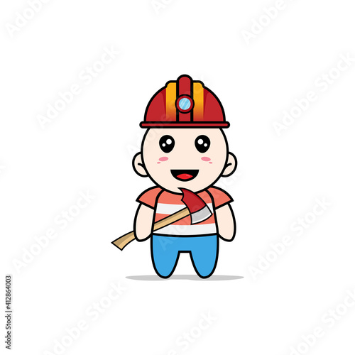 Cute boy character wearing miners costume.